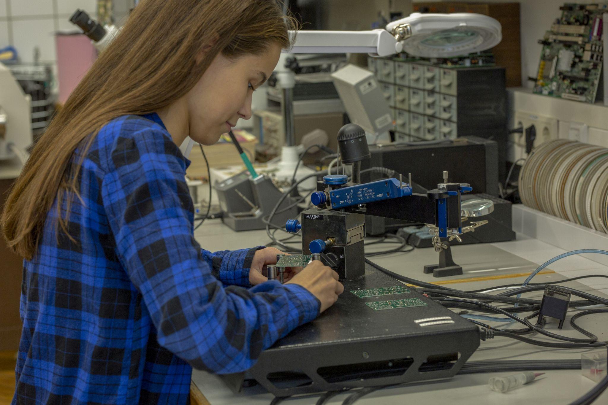 Hier beschäftigst du dich mit Hard- und Software für Industrie 4.0 und Internet of Everything. Du entwickelst elektronische Schaltungen und Geräte, programmierst Mikroprozessoren und Apps. Mit Mikrocontrollern und digitalen Signalprozessoren steuerst du Maschinen und Anlagen. Mit hochspezialisierter Messtechnik kannst du technische Prozesse optimieren.